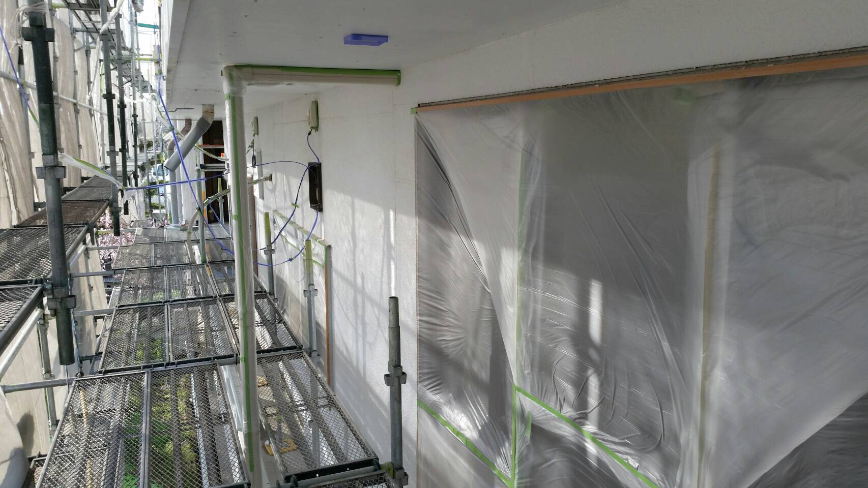 足場架設・高圧洗浄・ケレン作業が終わり、