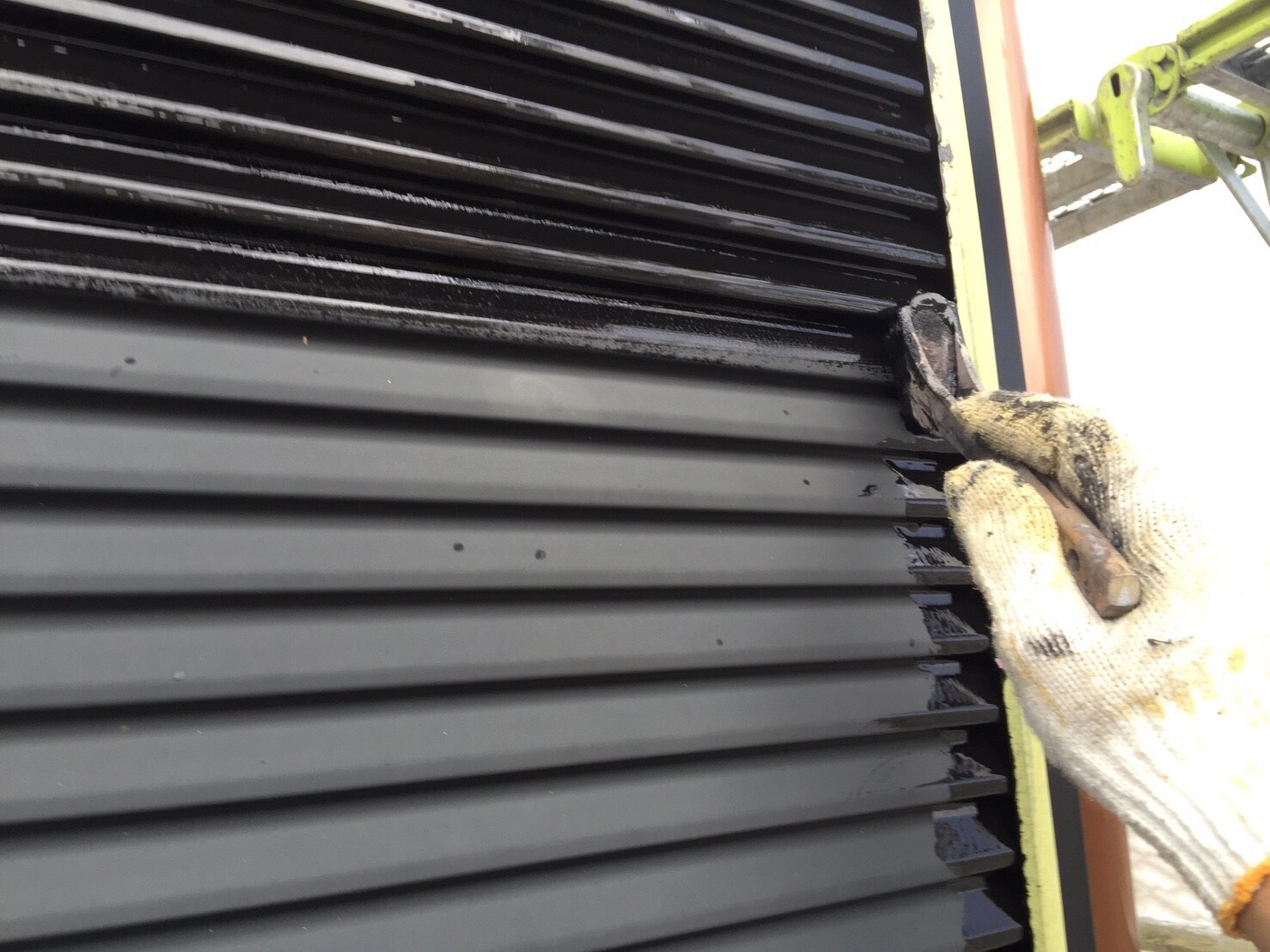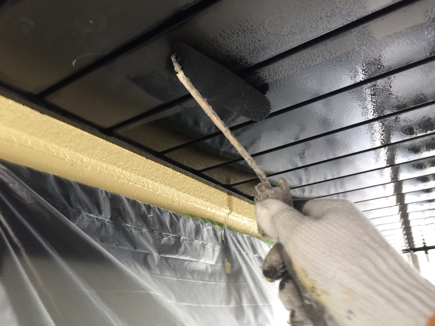 軒天の塗装をしているところです。