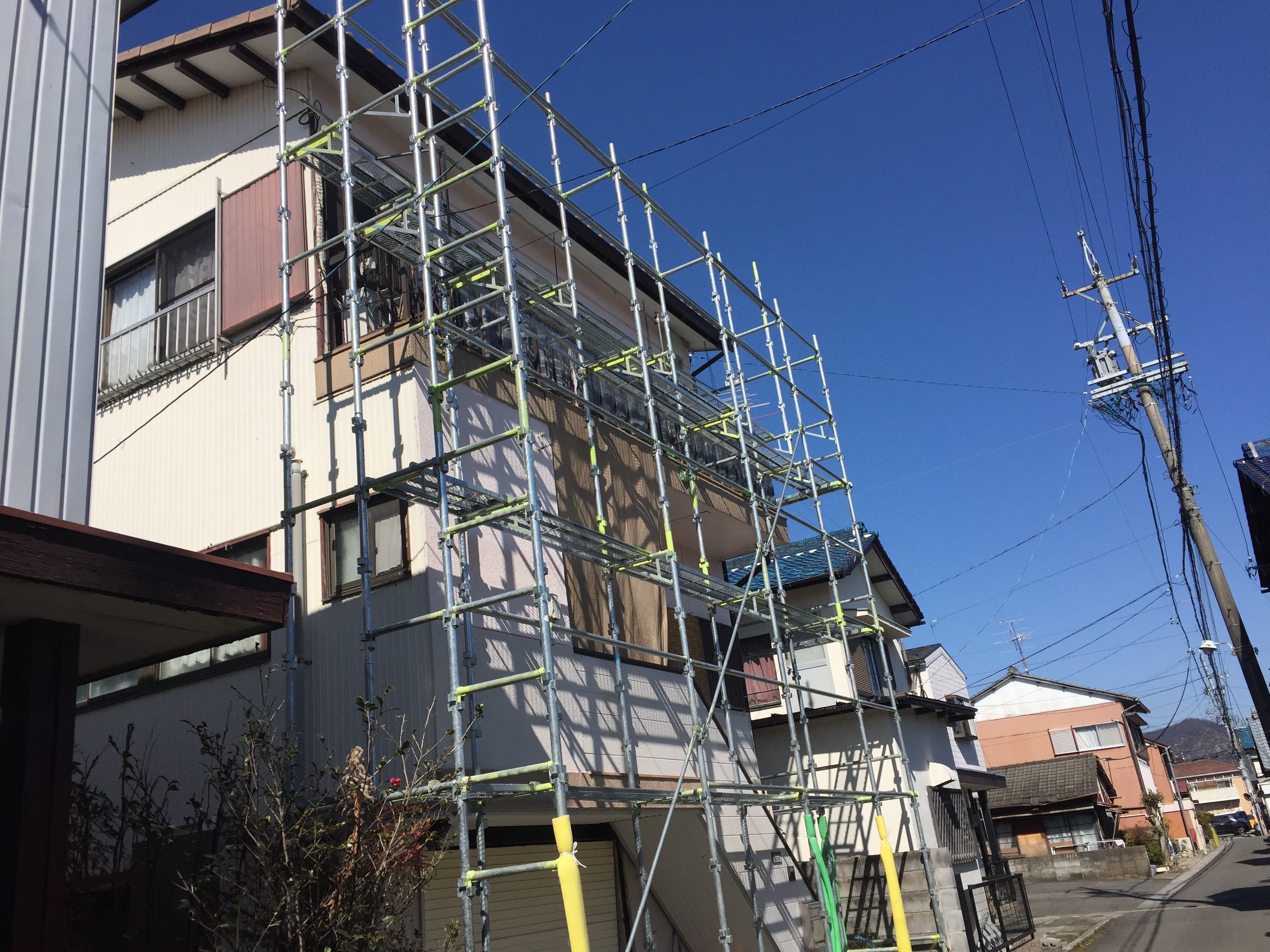まずはじめに足場の架設を行いました。