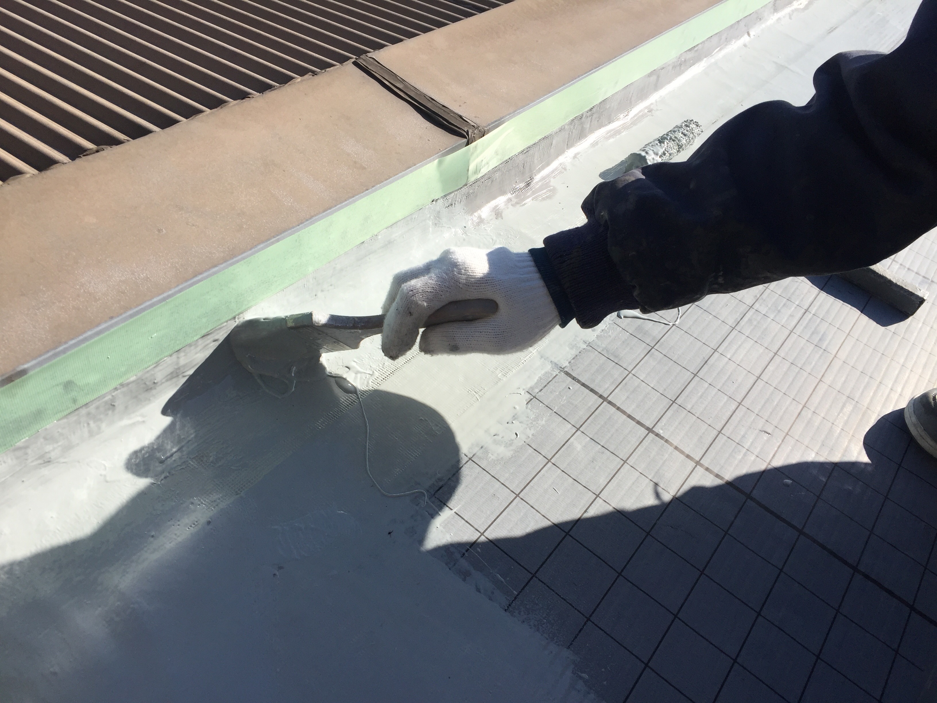 その上にウレタン防水の材料を塗っていきます。