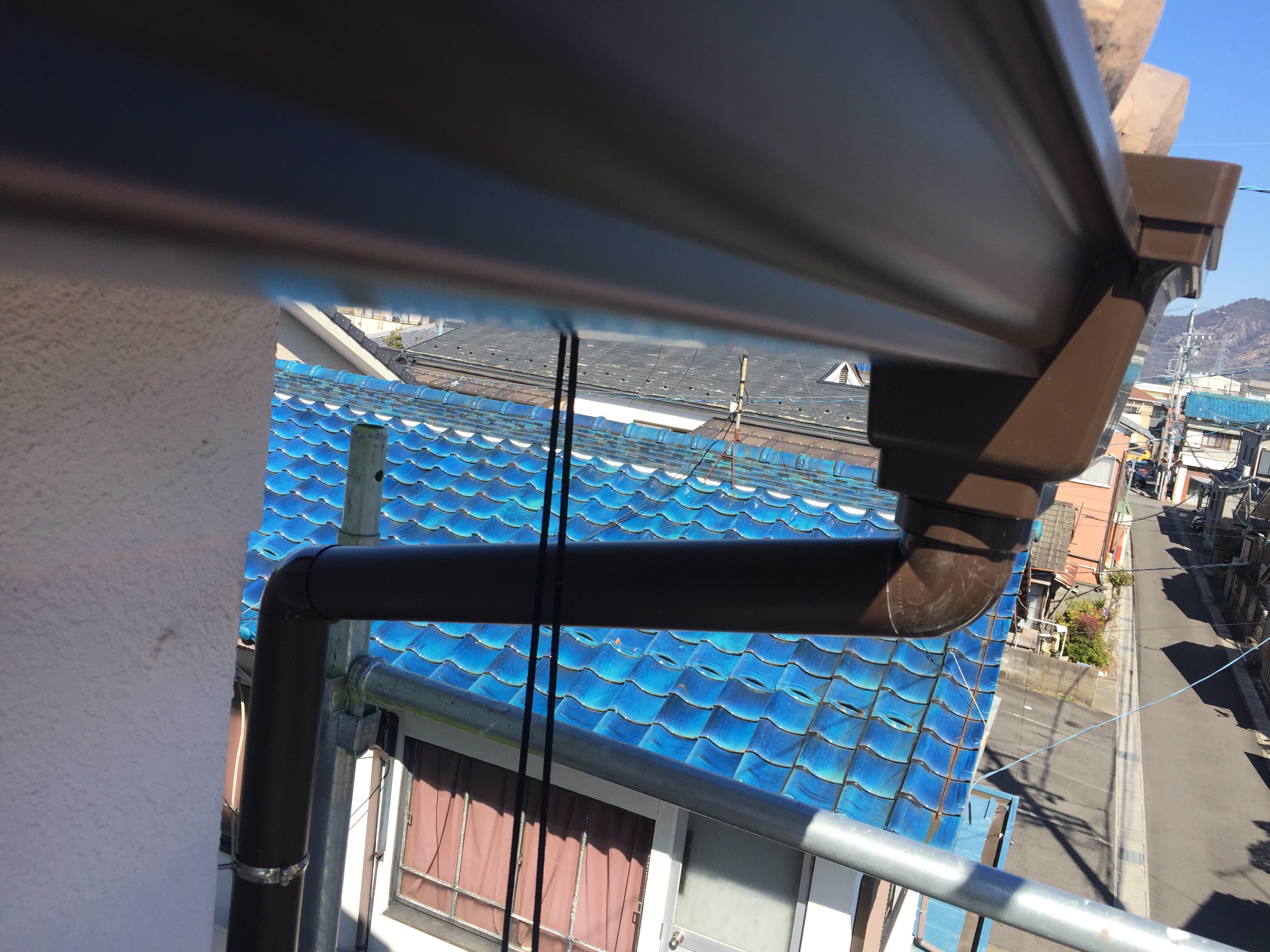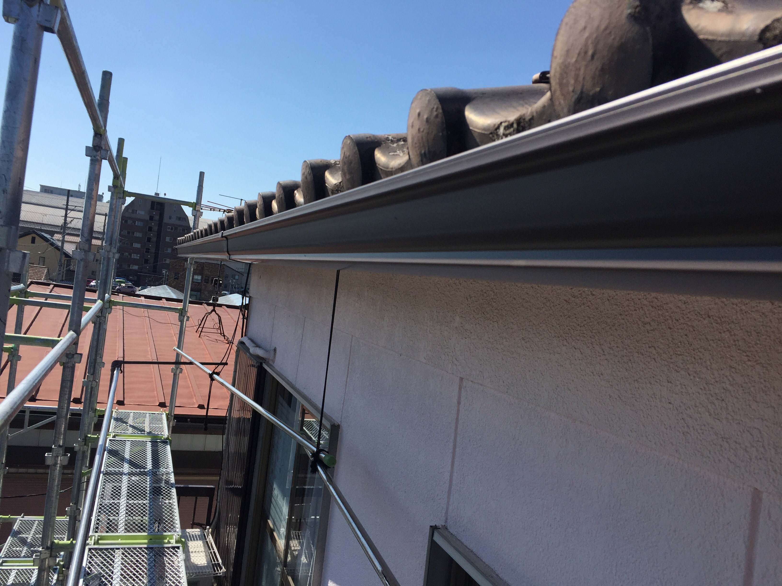 足場が組み終わったら樋工事スタートです。