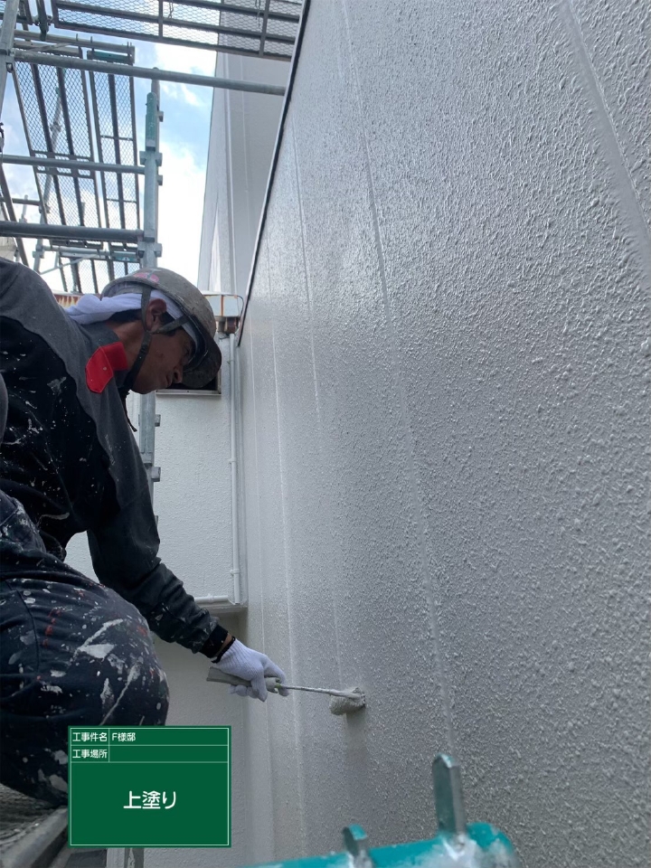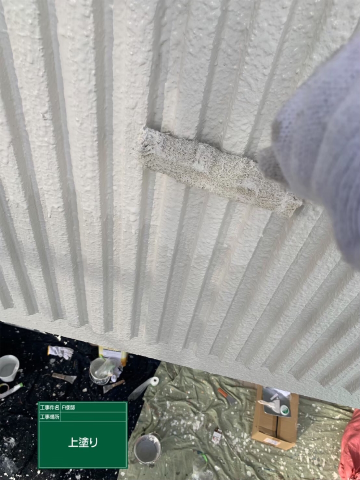 外壁の形状や、塗料の種類によっては「吹き付け塗装」を行う場合もありますが、リフォーム工事や改修工事の場合、近隣家屋が隣接しているケースが多い為、塗料飛散を防止するためにもローラー仕上げが現代では主流となっています。また、吹き付け塗装を行うよりも、ローラーでの施工を行った方が塗膜(塗料の厚み)が厚くなるため、外壁保護の観点からしてもローラー施工のほうが優位性があり主流となっています。